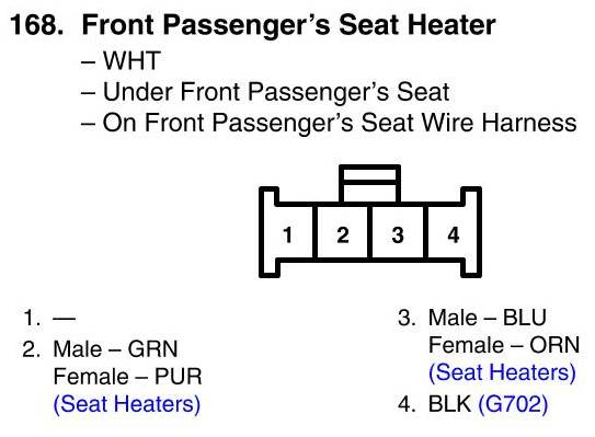 View 168 - Front Passenger's Seat Heater Connector View