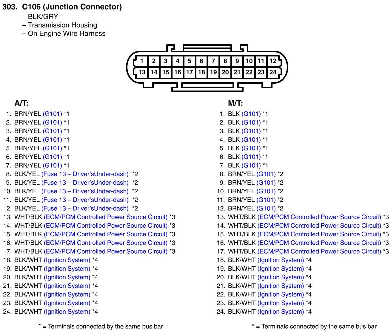 View 303 - C106 (Junction Connector) Connector View