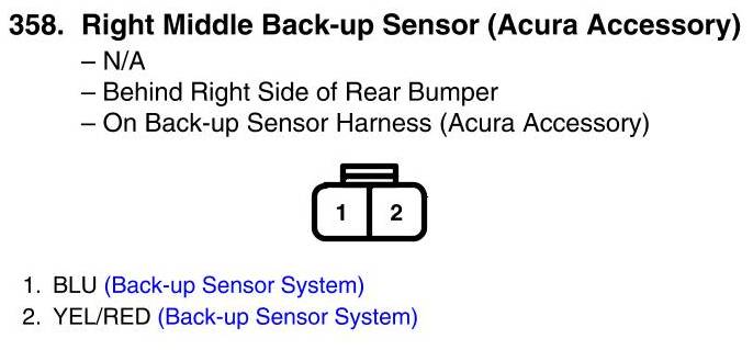 View 358 - Right Middle Back-Up Sensor Connector View (Acura Accessory)
