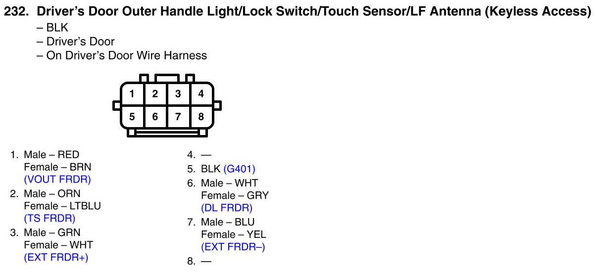 Driver's Door Outer Handle Light/Lock Switch/Touch Sensor/LF Antenna Connector View (Keyless Access)