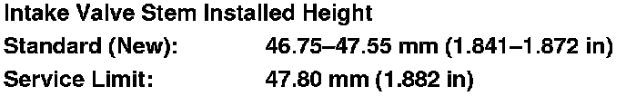 9. If the valve stem installed height is over the service limit, replace the valve and recheck. If it is still over the service limit, replace the cylinder head; the valve seat in the head is too deep.