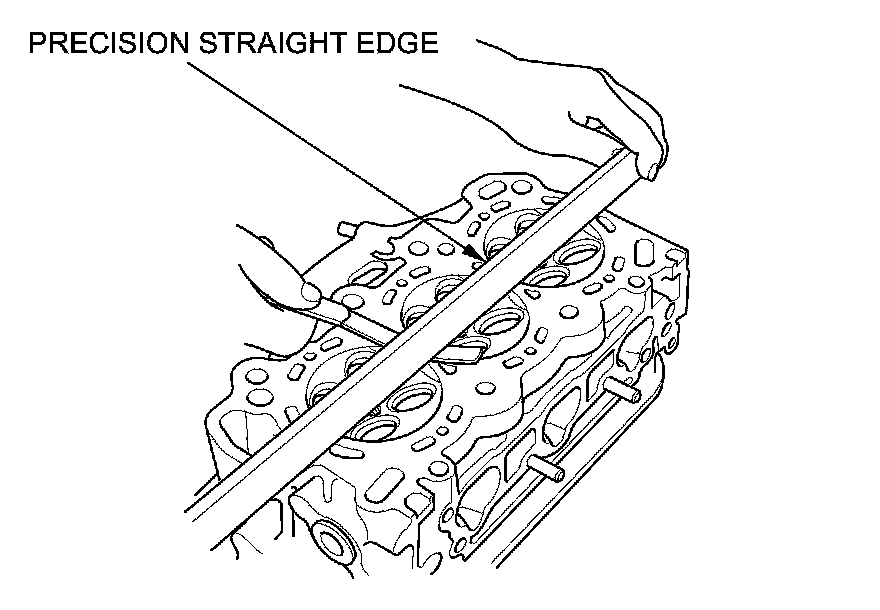 3. Check the cylinder head for warpage. Measure along the edges, and three ways across the center.