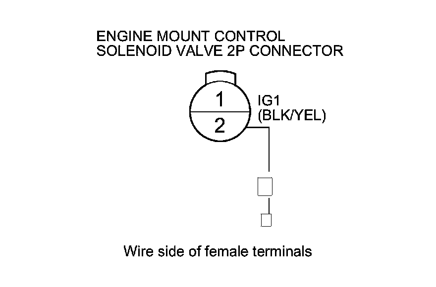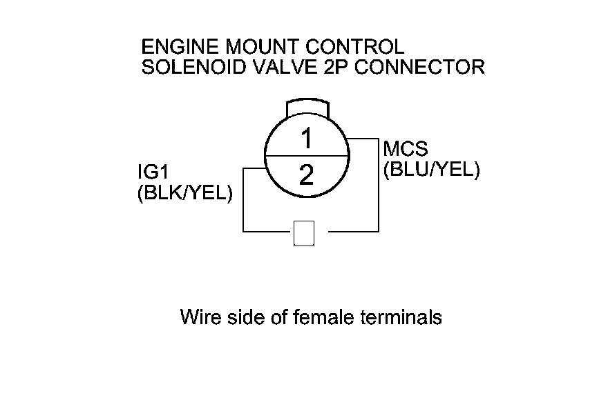 Repair open in the wire between PCM terminal A12 and engine mount control solenoid valve 2P connector terminal No. 1. If the wire is OK, update the PCM if it does not have the latest software ECM/PCM Update, or substitute a known-good PCM Initial Inspection and Diagnostic Overview, and recheck. If the engine mount control system works properly, and the PCM was updated, the troubleshooting is complete. If the PCM was substituted, replace the original PCM Service and Repair.�