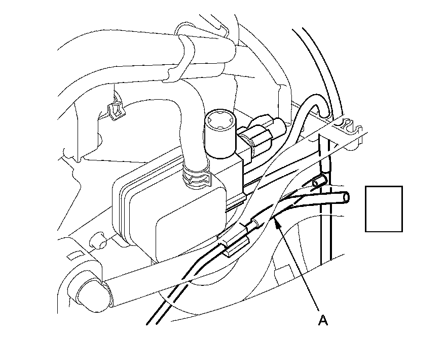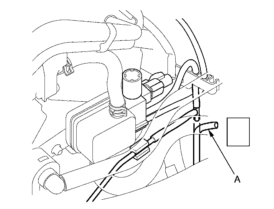 16. Disconnect the vacuum hose (A) from the three way valve, and connect a vacuum pump/gauge to the hose. Apply about 20 in Hg of vacuum, and wait for 20 seconds.