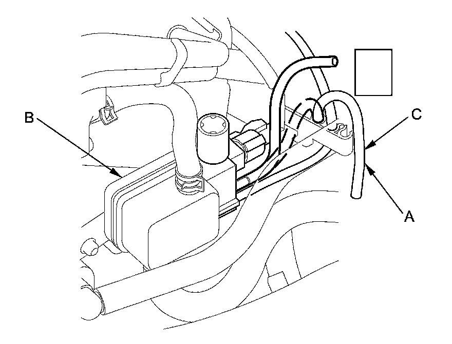 Repair the vacuum hose (C) between the intake manifold and the engine mount control solenoid. If the vacuum hose is OK, replace the engine mount control solenoid valve.�