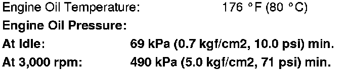 4. Allow the engine to reach operating temperature (fan comes on at least twice). The pressure should be: