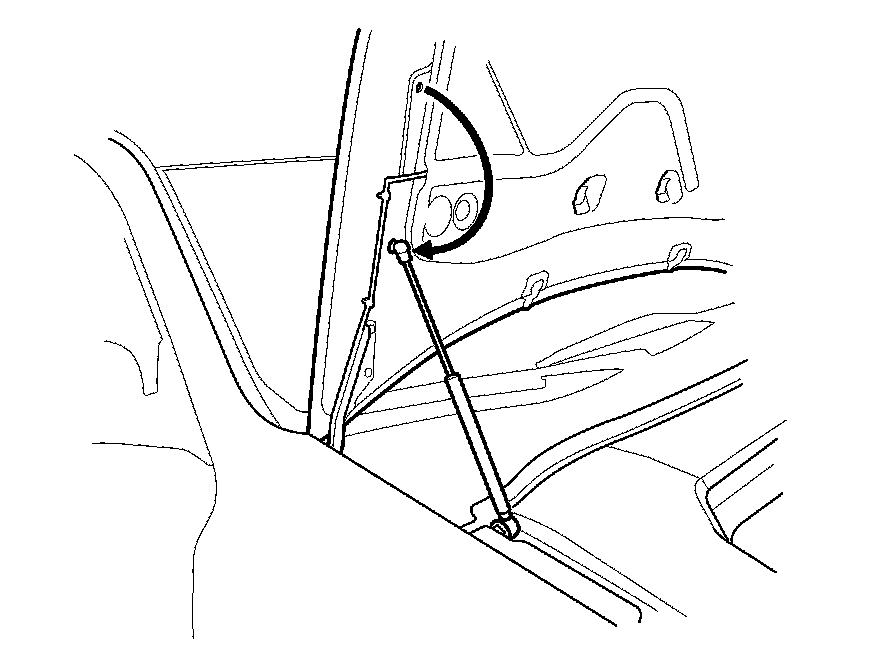 1. Disconnect the support struts from both sides of the pivot ball (bolted to the hood). Secure the hood in a vertical position. Install the right side pivot ball into the lower threaded hole.