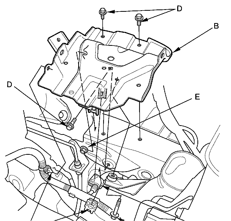 9. Remove the bolts (D), and loosen the bolt (E), then remove the battery base.