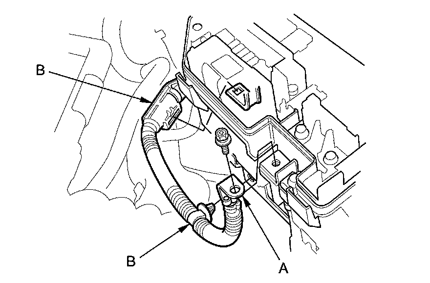 12. Disconnect the battery cable (A) from the under-hood fuse/relay box.