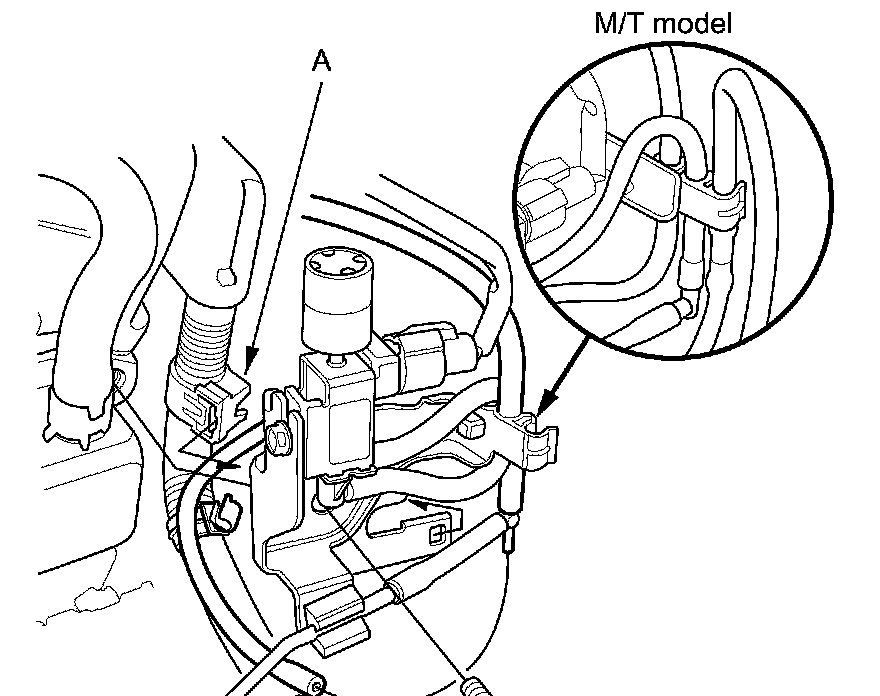 50. A/T model: Disconnect the vacuum hose (B).