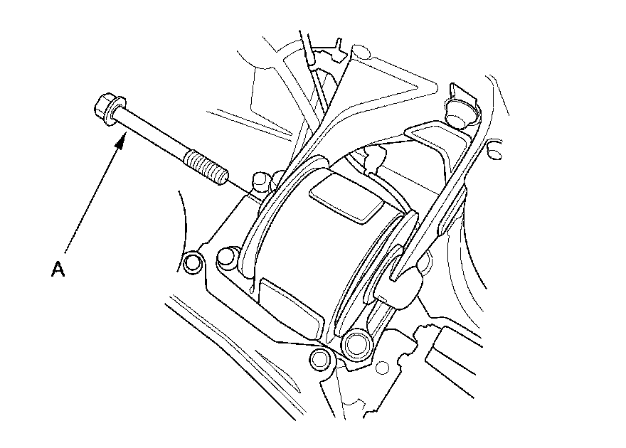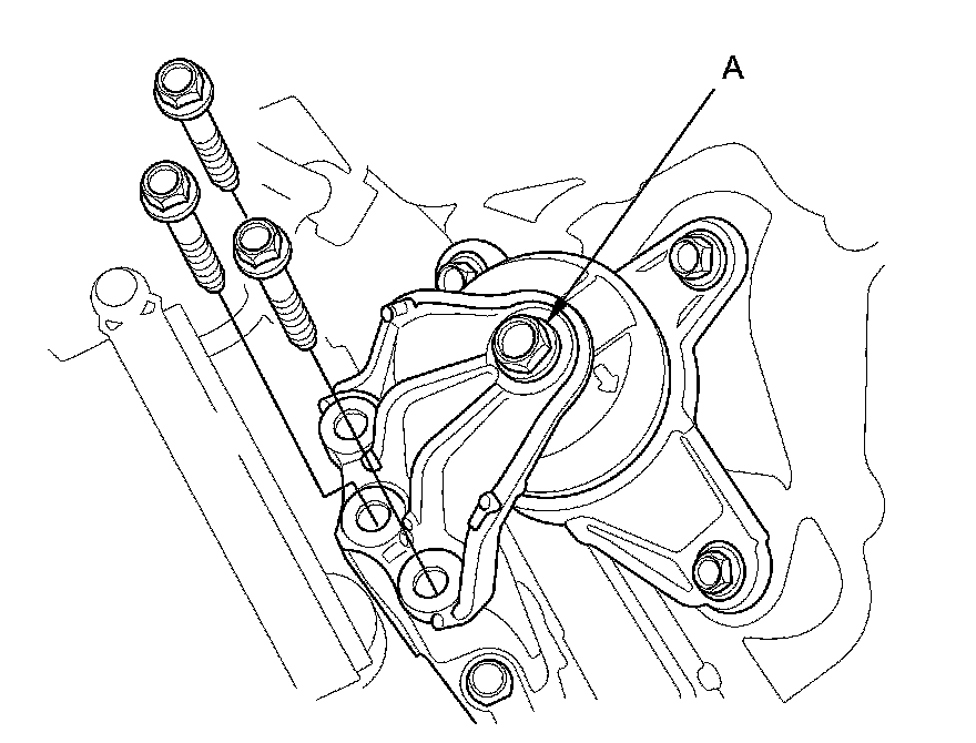 NOTE: Do not remove the bolt (A) from the upper transmission mount. If the bolt is removed, the upper transmission mount must be replaced as an assembly.