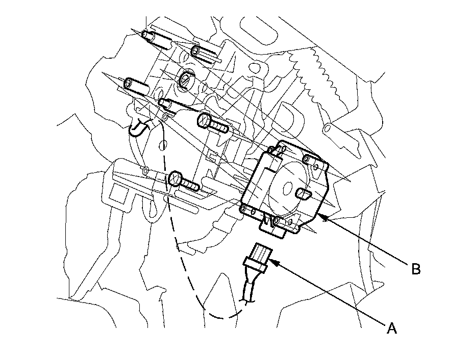 2. Disconnect the 7P connector (A) from the driver's mode control motor (B). Remove the self-tapping screws and the driver's mode control motor from the heater unit.