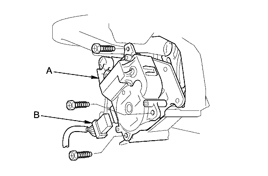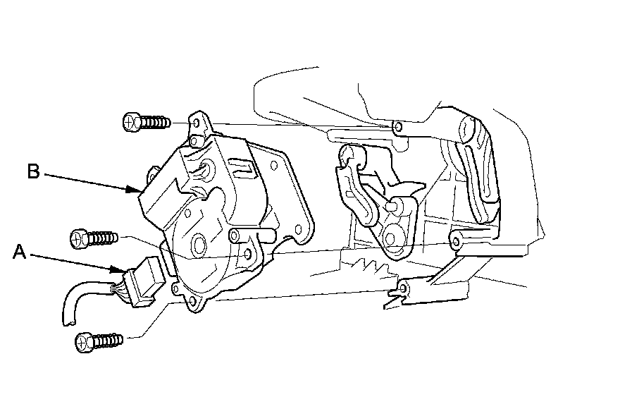 4. Disconnect the 7P connector (A) from the recirculation control motor (B). Remove the self-tapping screws and the recirculation control motor from the blower unit.