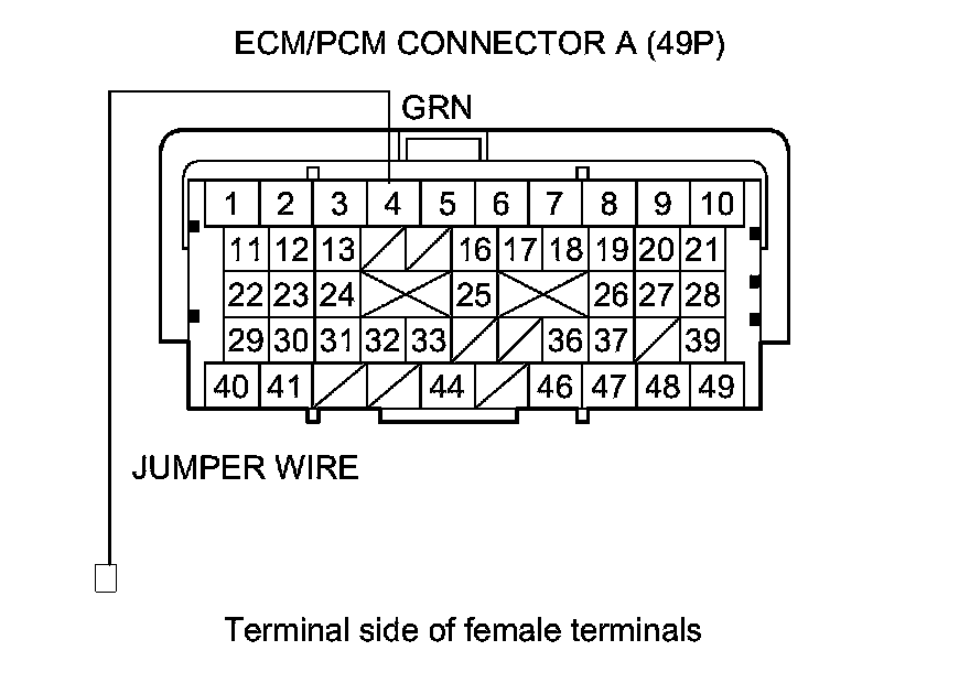 14. Connect the ECM/PCM connector A (49P) terminal No. 4 to body ground with a jumper wire.
