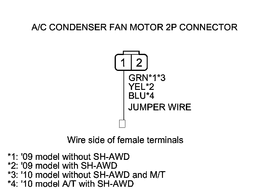 24. Connect A/C condenser fan motor 2P connector terminal No. 1 to body ground with a jumper wire.