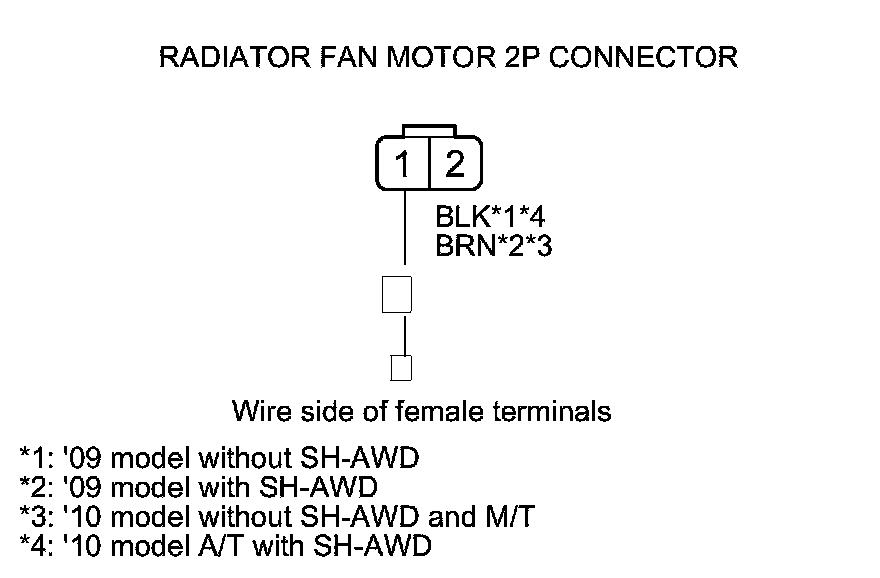 34. Check for continuity between radiator fan motor 2P connector terminal No. 1 and body ground.