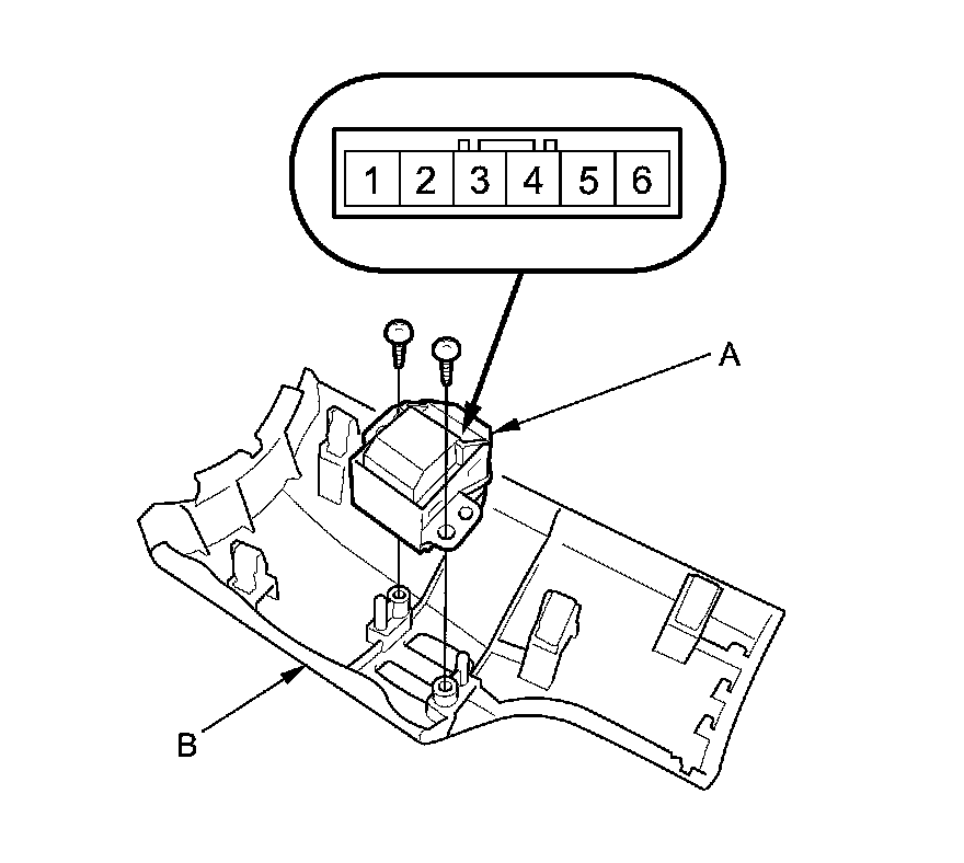 2. Remove the two screws and dashlights brightness controller (A) from the driver's outer dashboard trim (B).