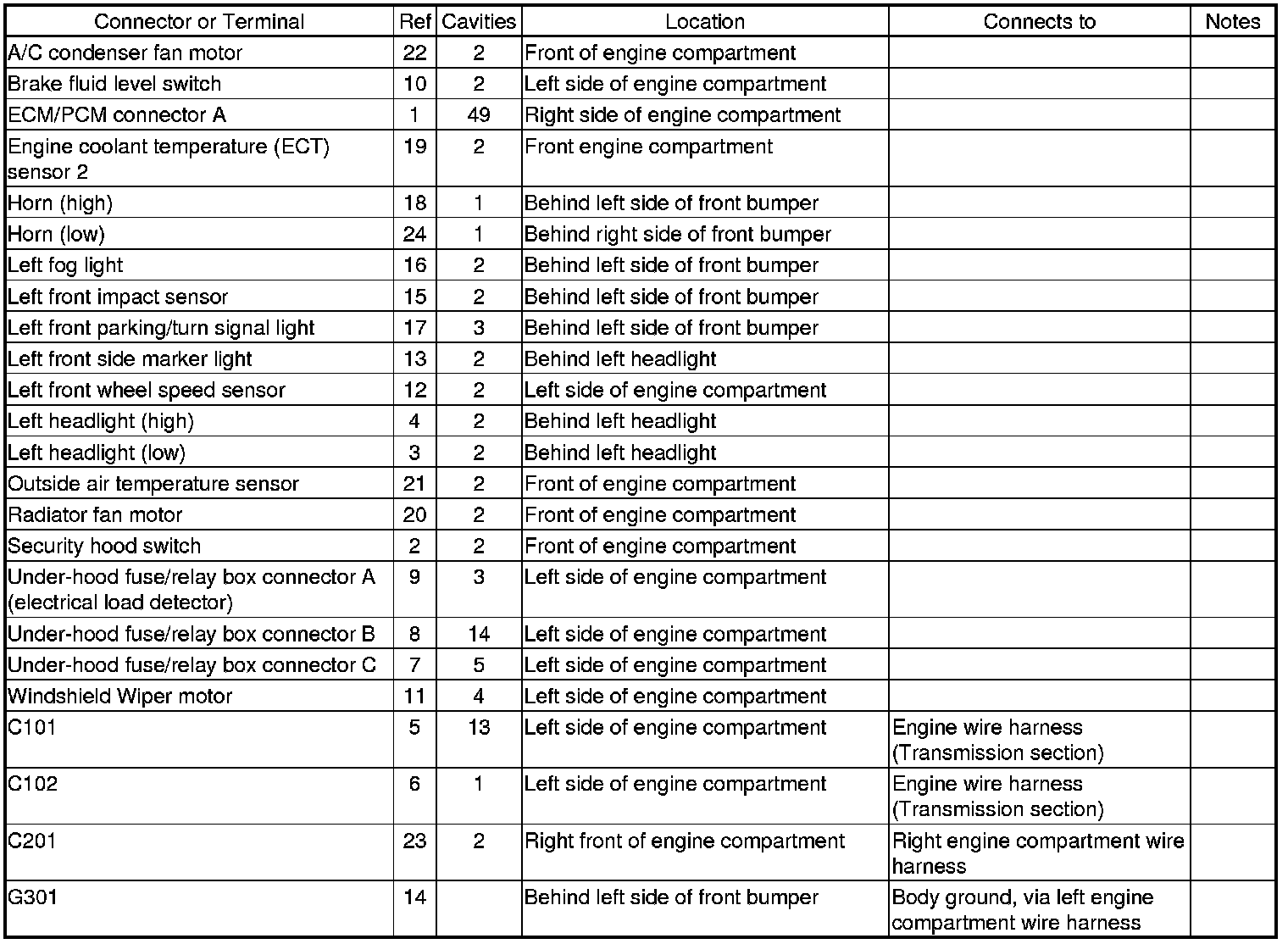 Left Engine Compartment Wire Harness (Engine Compartment Branch) Connector And Harness Locations