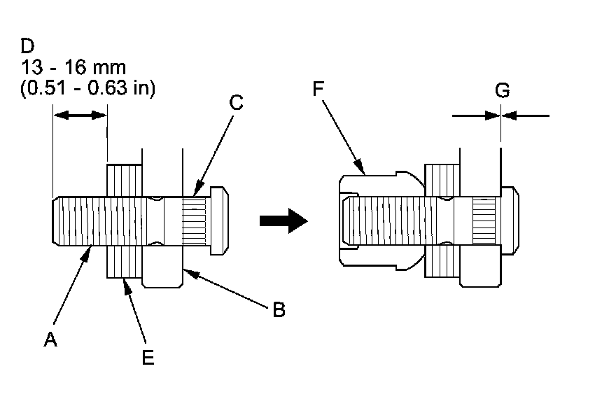 4. Install the wheel bolt using a hydraulic press until the wheel bolt shoulder is fully seated.
