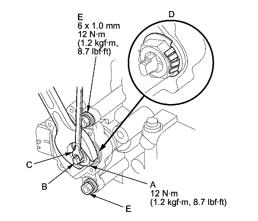 16. Tighten the bolts (E) securing the transmission range switch to 12 Nm (1.2 kg-m, 8.7 lb-ft).
