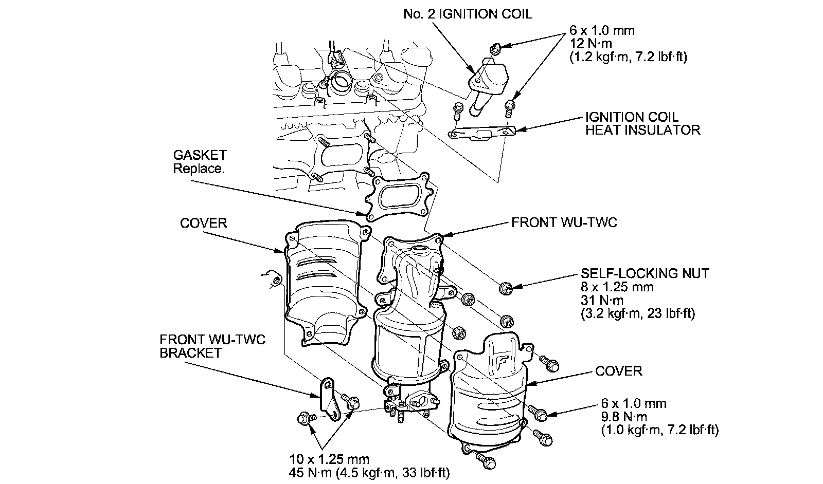 7. Carefully install the front WU-TWC with a new gasket and new self-locking nuts. Tighten the nuts in a crisscross pattern in two or three steps.