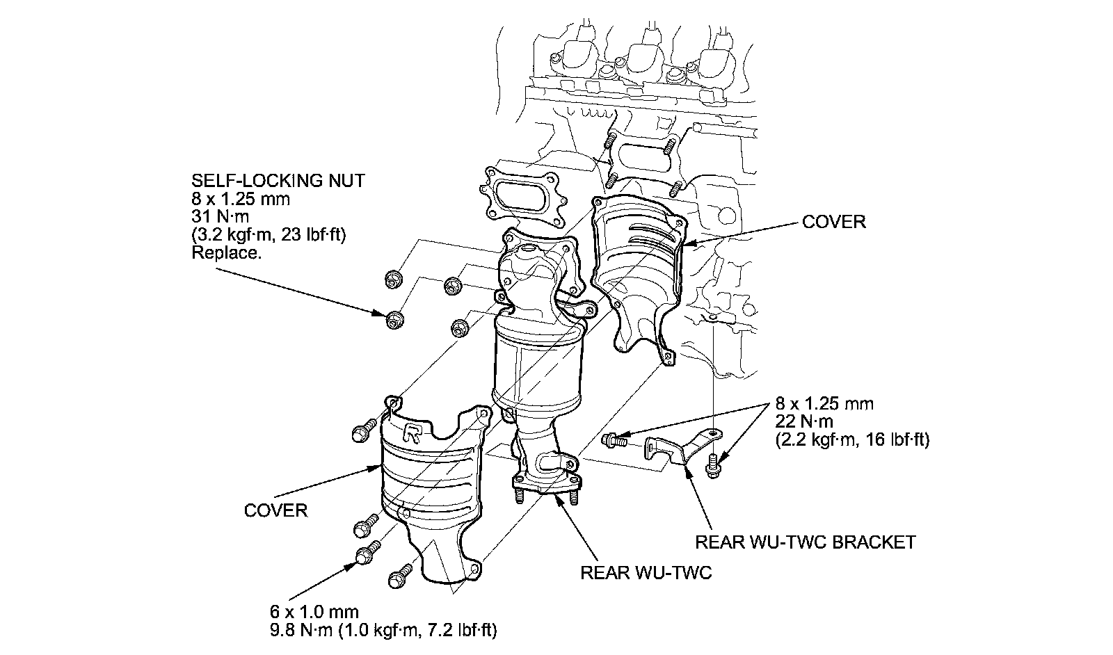 7. Carefully install the rear WU-TWC with a new gasket and new self-locking nuts. Tighten the nuts in a crisscross pattern in two or three steps.