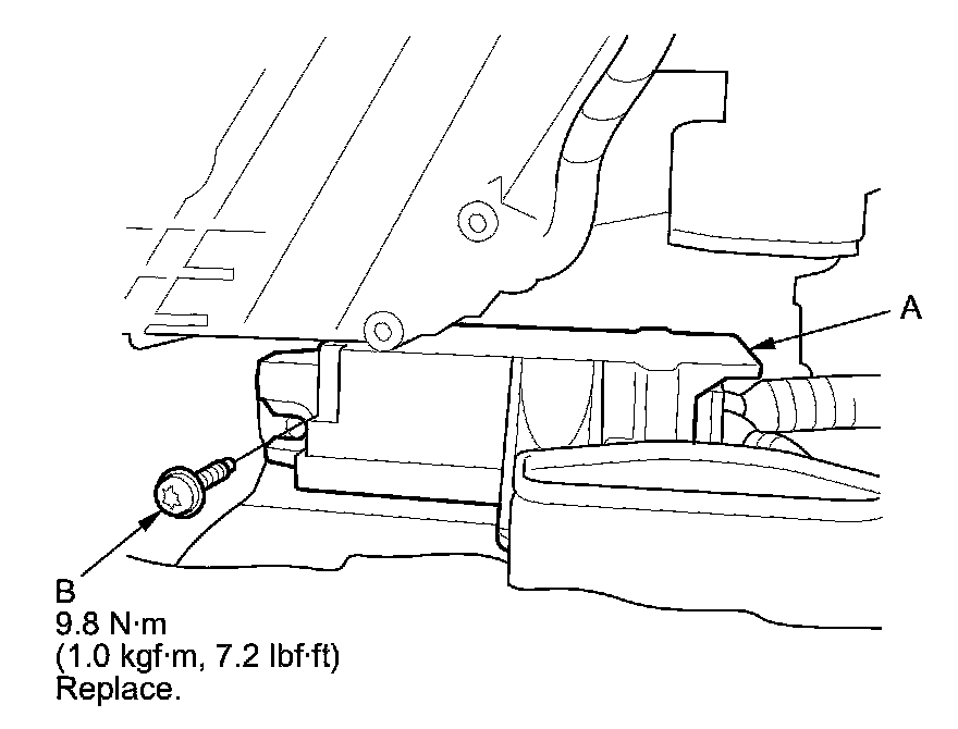 1. Install the SRS unit (A) with a new TORX bolt (B) using a TORX T30 bit.