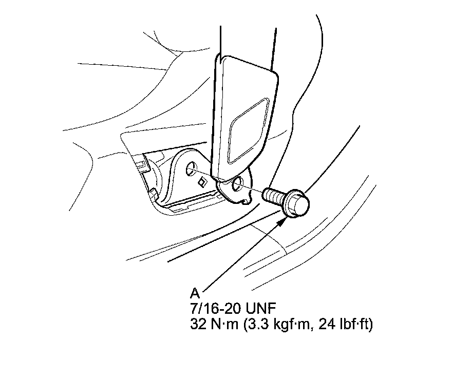 - Before installing the center anchor bolt, make sure there are no twists or kinks in the front seat belt.