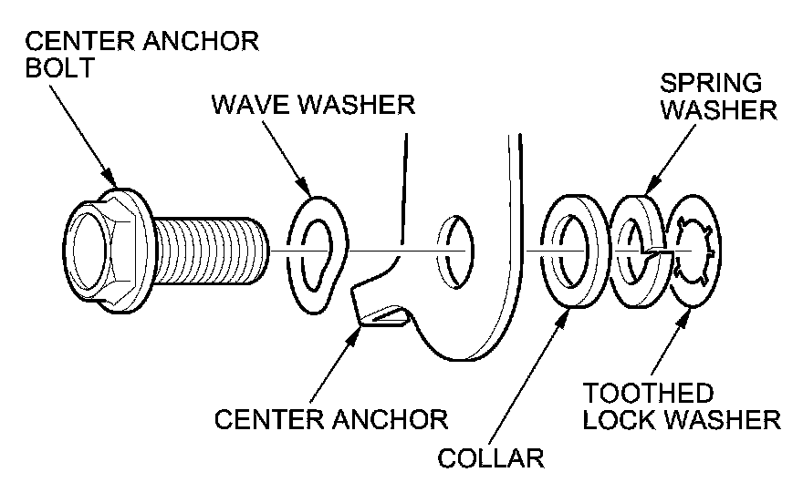 - Assemble the washers and the collar on the center anchor bolt as shown.
