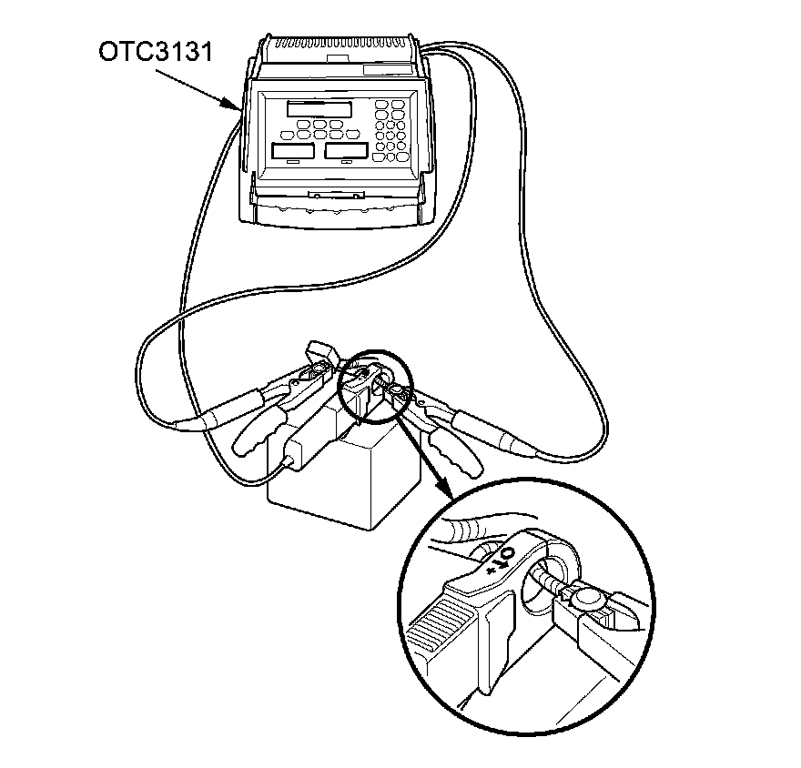 14. Connect the alternator, regulator, battery and starter tester (OTC3131) to the battery.