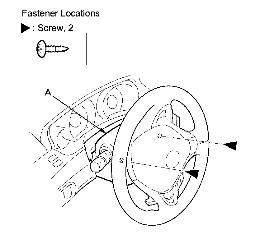 2. Turn the steering wheel to access the mounting screws, then remove the screws from front side of the column cover (A).