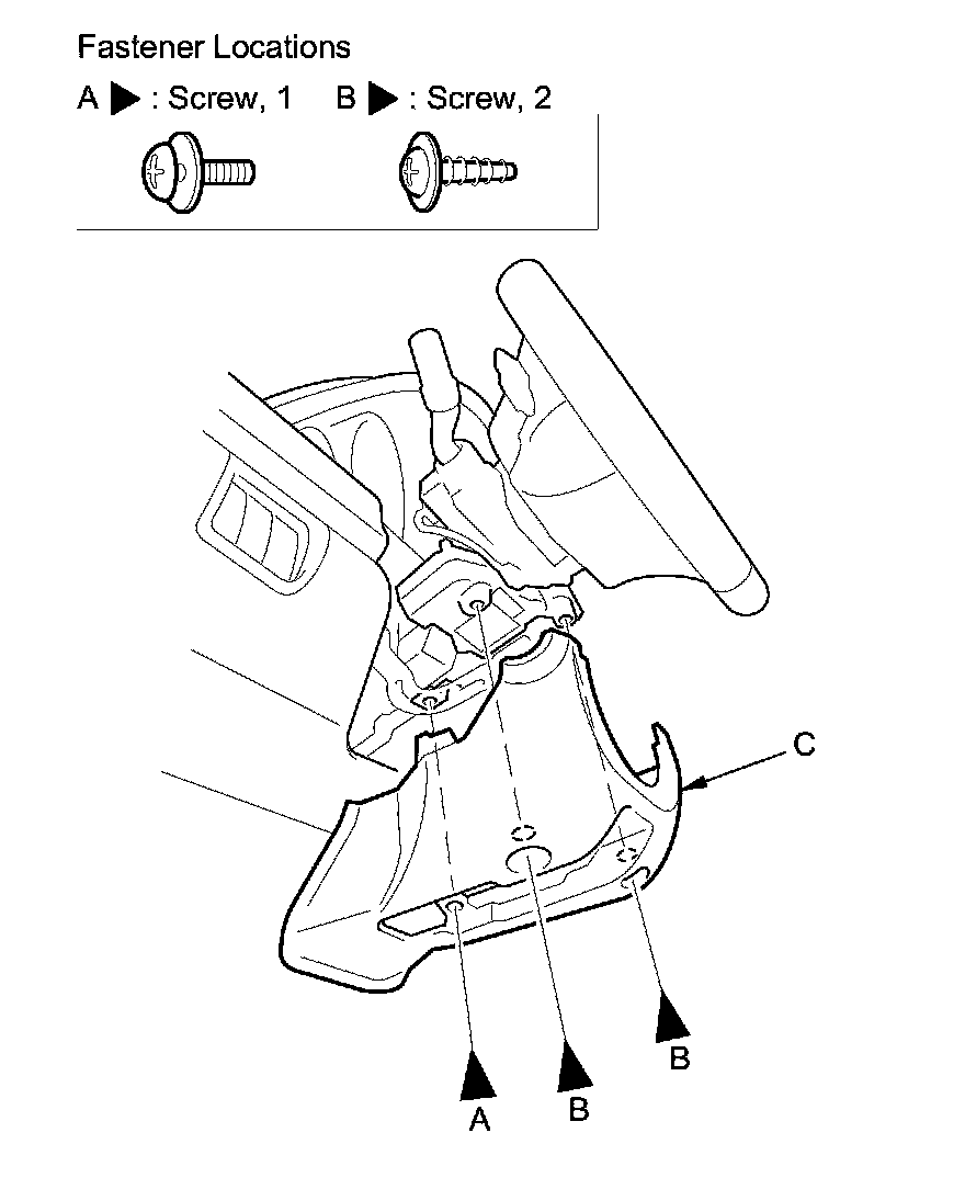 4. Remove the screws (A, B), then remove the lower column cover (C).