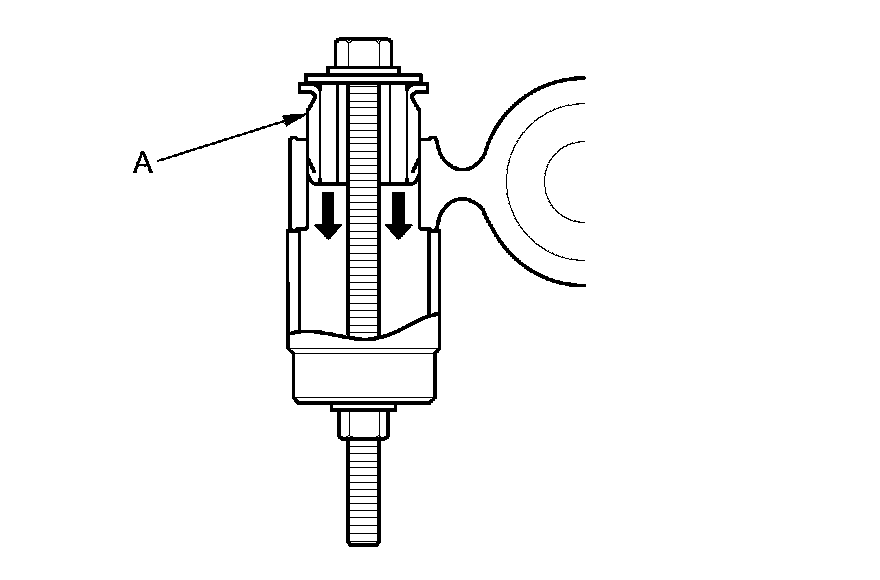 4. Apply a mild soap and water solution to the new gearbox mount cushion surface (A), then place the mount cushion on the gearbox mounting cushion hole.