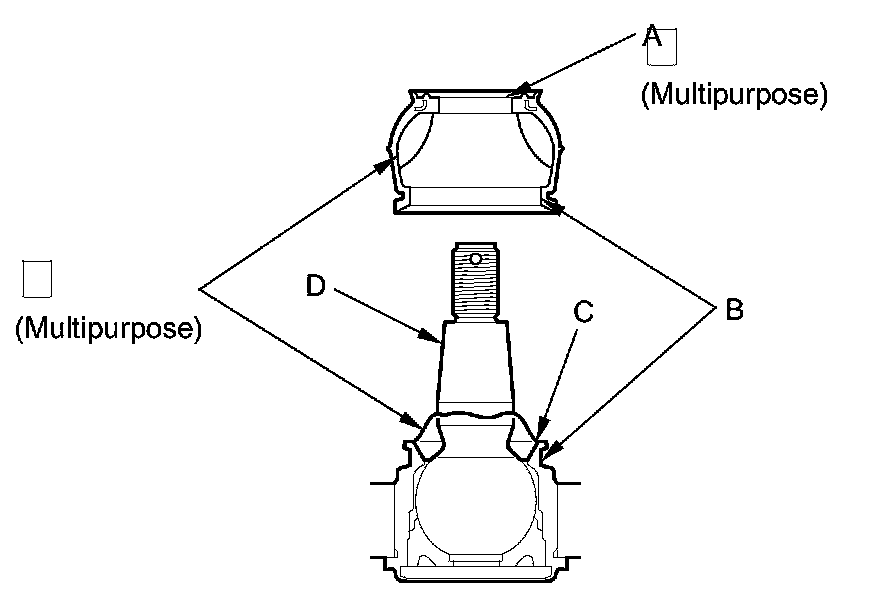 5. Pack fresh grease into the base (C). Do not let dirt or other foreign materials get into the boot.