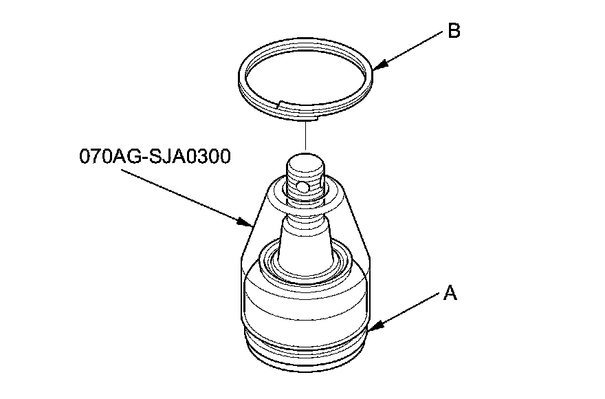 7. The front knuckle ball joint or the rear upper arm ball joint: Adjust the depth by turning the clip guide until its base is just above the groove around (A) the bottom of the boot. Then slide the clip (B) over the tool and into position on the boot.