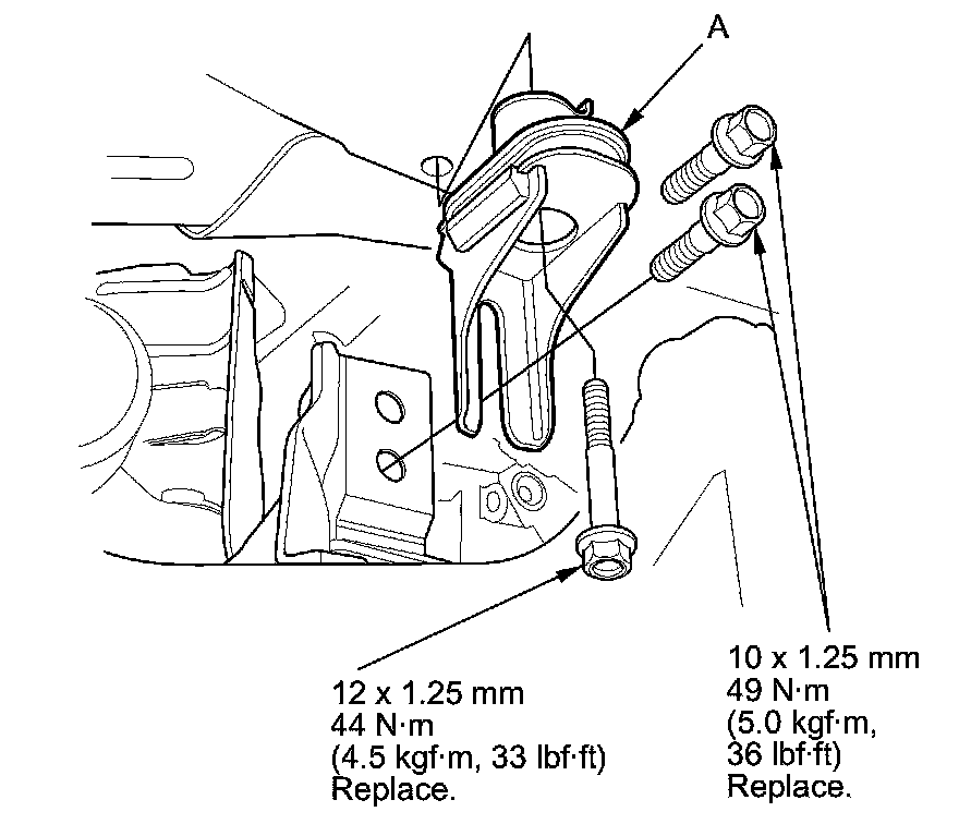 NOTE: Use a new rear engine mount bolt during reassembly.