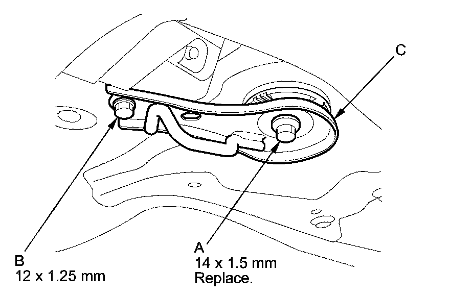 NOTE: Use new nuts (C) and a front engine mount bolt during reassembly.