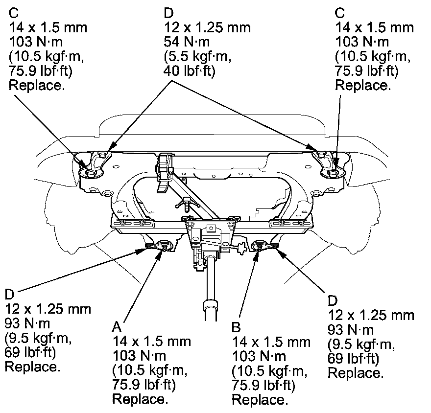 NOTE: Check all of the subframe mounting bolts, and retighten if necessary.