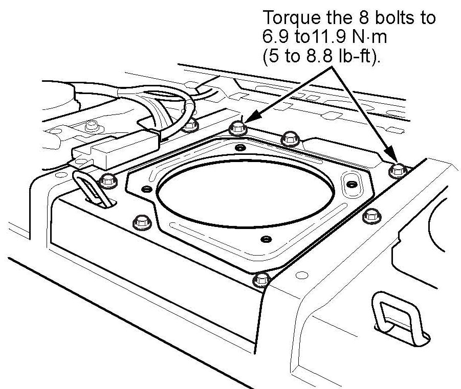 27. Torque the eight service plate bolts to 6.9 to 11.9 N.m (5 to 8.8 lb.ft).