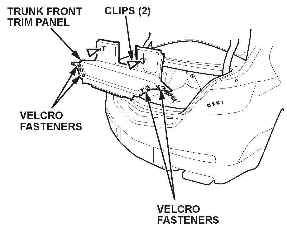 5. Detach the clips and release the Velcro fasteners, then remove the trunk front trim panel.