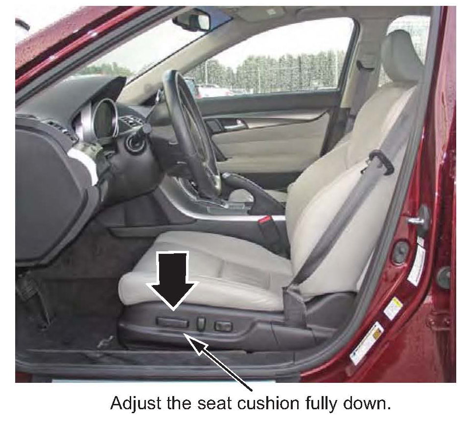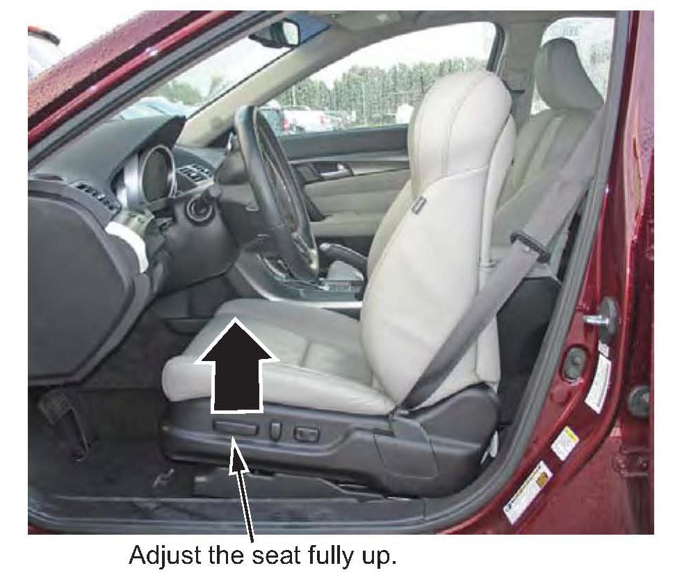Make sure the seat cushion is raised to its highest position in order to access the seat adjuster assembly TORX bolts later in this procedure.