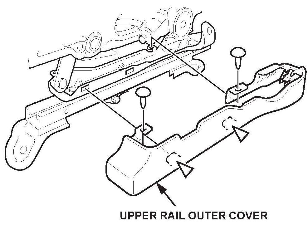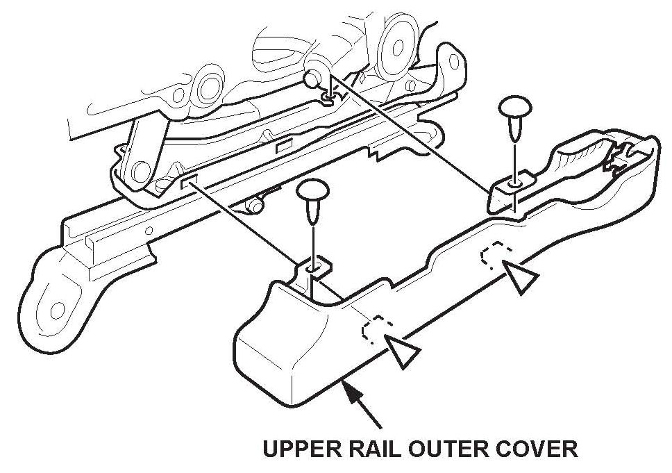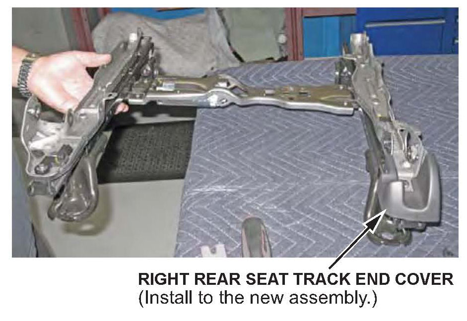 20. Remove the right rear seat track end cover from the old seat rail assembly, and install it on the new one
