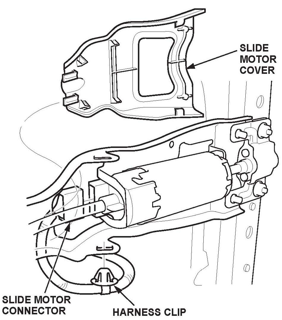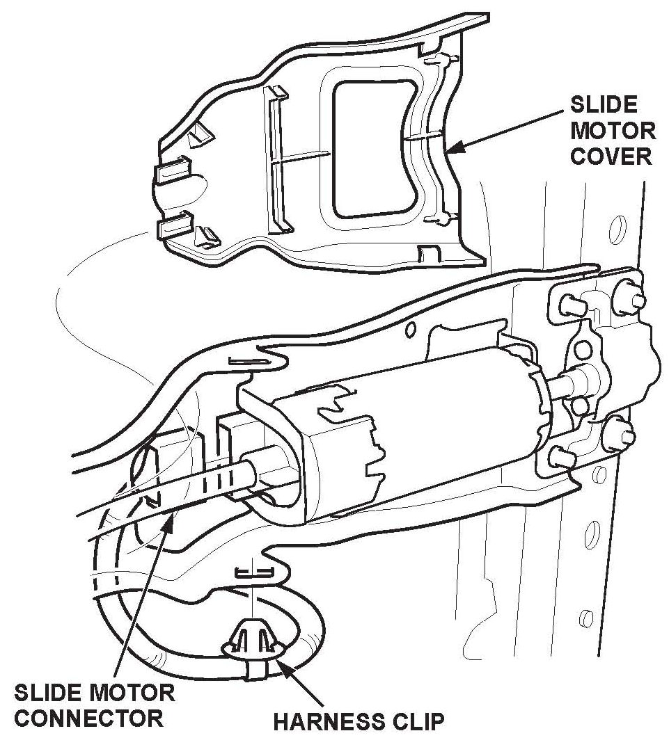 23. Reconnect the slide motor connector, and attach the harness clip.