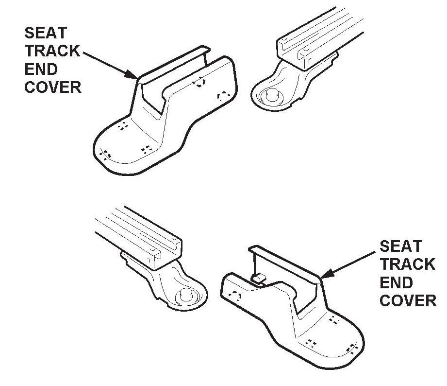 7. Remove the end covers from the back of both dnver's seat tracks.