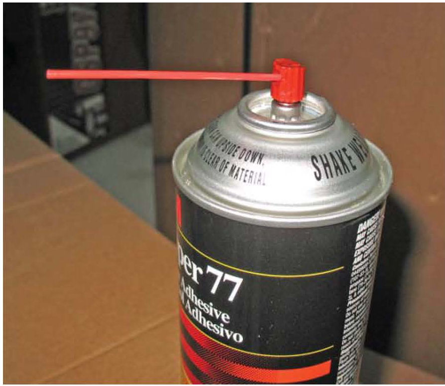 1. Replace the standard nozzle tip on the spray adhesive container with one that can accept a small tube into it for a more controlled concentrated spray needed for this repair.