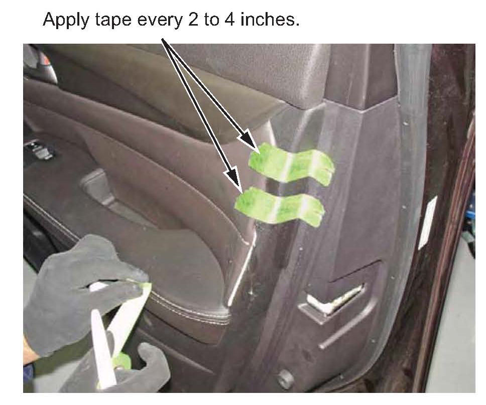 7. Wait about a half-hour, then remove the tape from the door panel, starting from the fabric end and it pulling away from the panel.