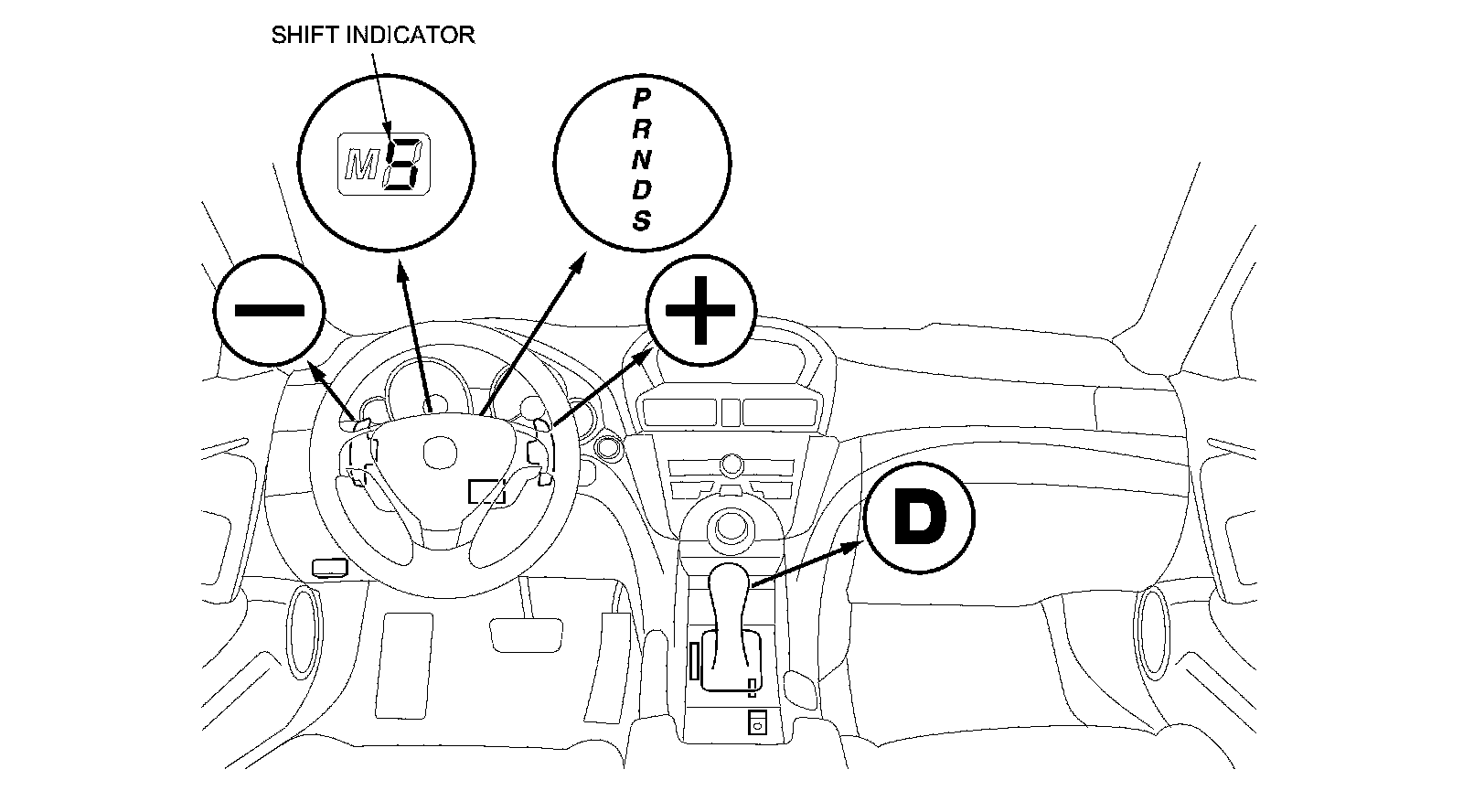 The transmission is provided with a D-paddle shift mode in D, and with a sequential sportshift mode in S. Either mode can be activated by pressing the paddle shifter + (upshift switch) or paddle shifter - (downshift switch) while driving with the shift lever in D and S.