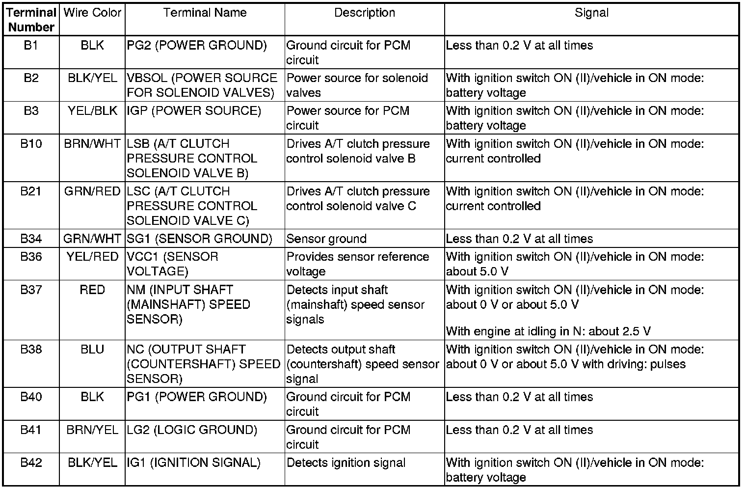 PCM A/T Control System Inputs and Outputs at Connector B (triangle) (49P)