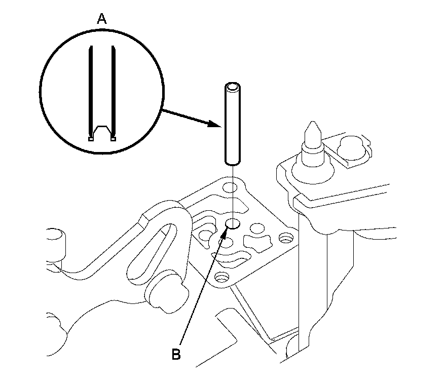 6. Install the 8 x 53 mm ATF joint pipe (A) with the filter end into its mounting hole (B).