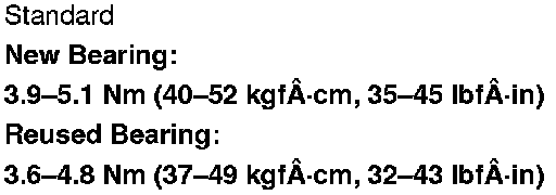 Changing the 85 mm thrust shim to the next size will increase or decrease the starting torque about 0.5-0.6 Nm (5-6 kgf.cm, 5-5 lbf.in)